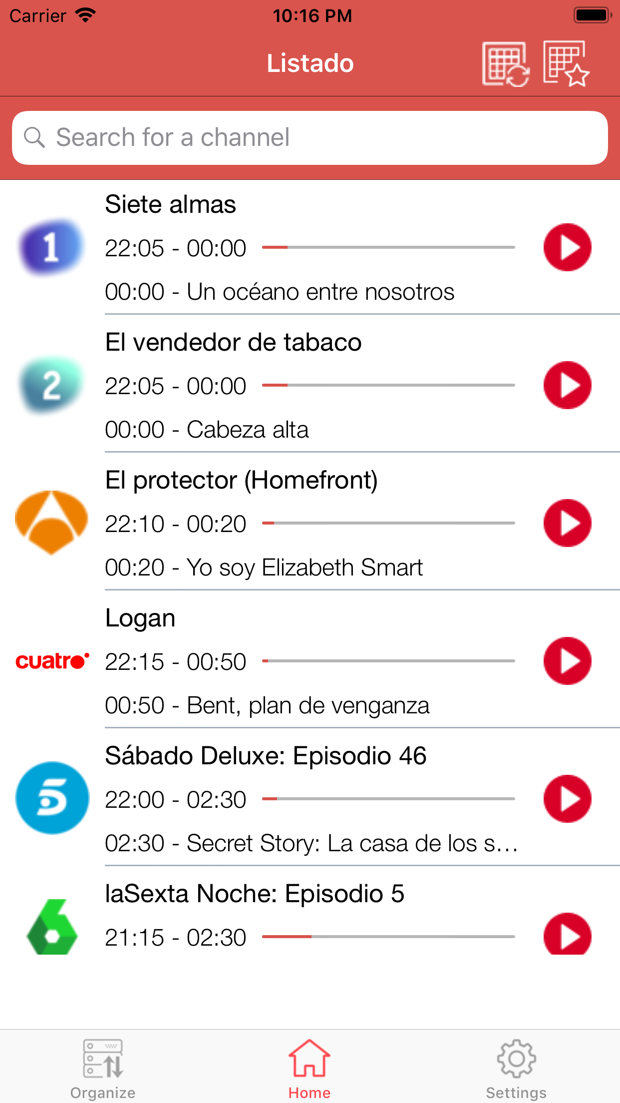 Busca de una manera rápida a que hora retransmite la programación que elijas.