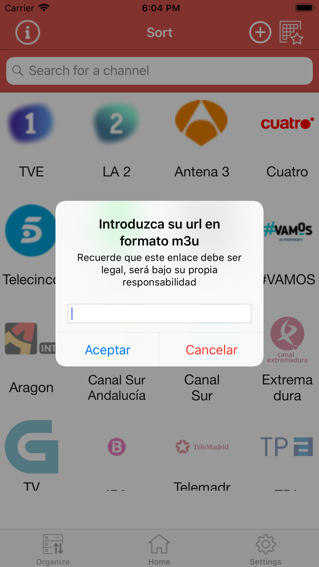 Ahora tambien puedes agregar tu enlace para poder ver tus canales favoritos en directo, siempre y cuando tengas los permisos necesarios (lista TV - Spain no almacena, distribuye o contiene enlaces a canales de televisión, al introducir el enlace será bajo tu propia responsabilidad)